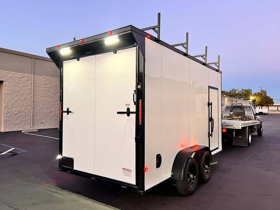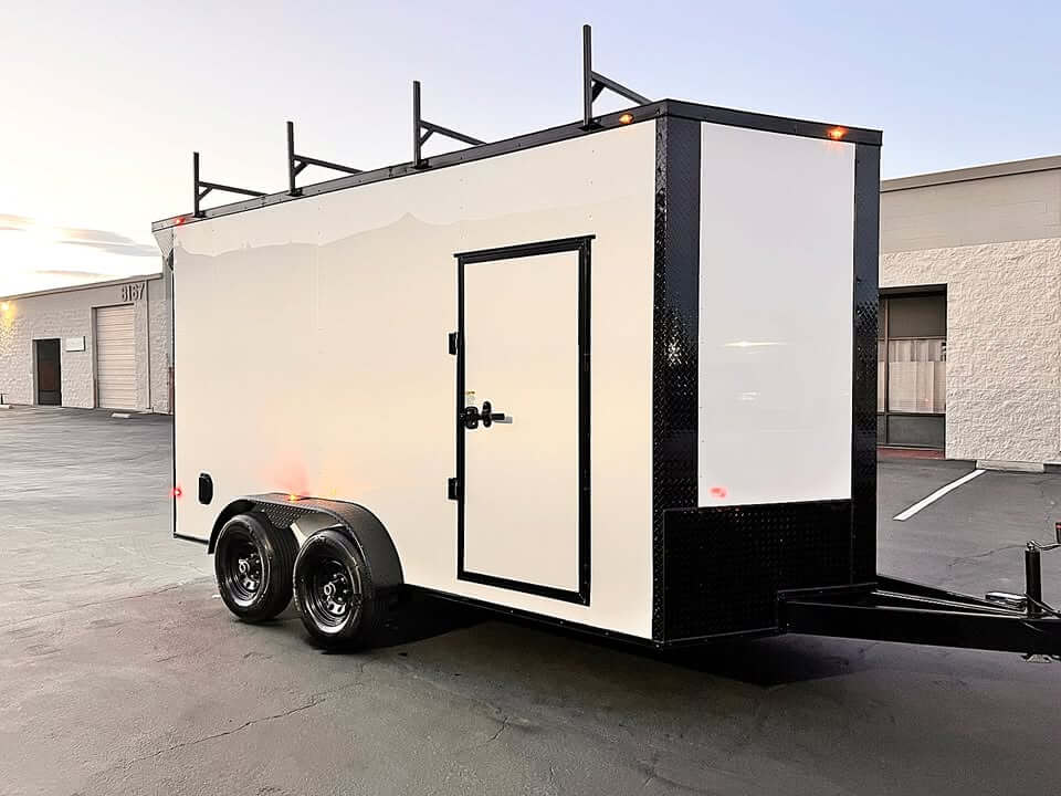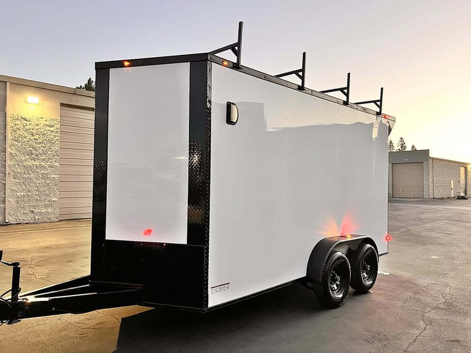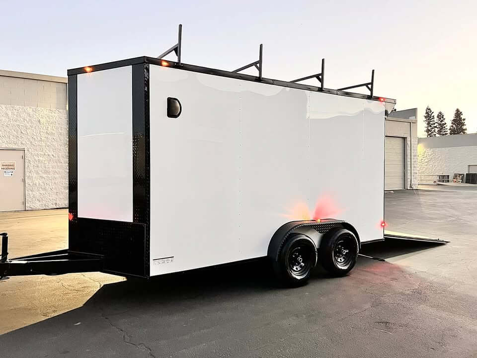 2026 – 7×14 TA3 J&C Suppliers enclosed cargo toy hauler trailer – White blackout